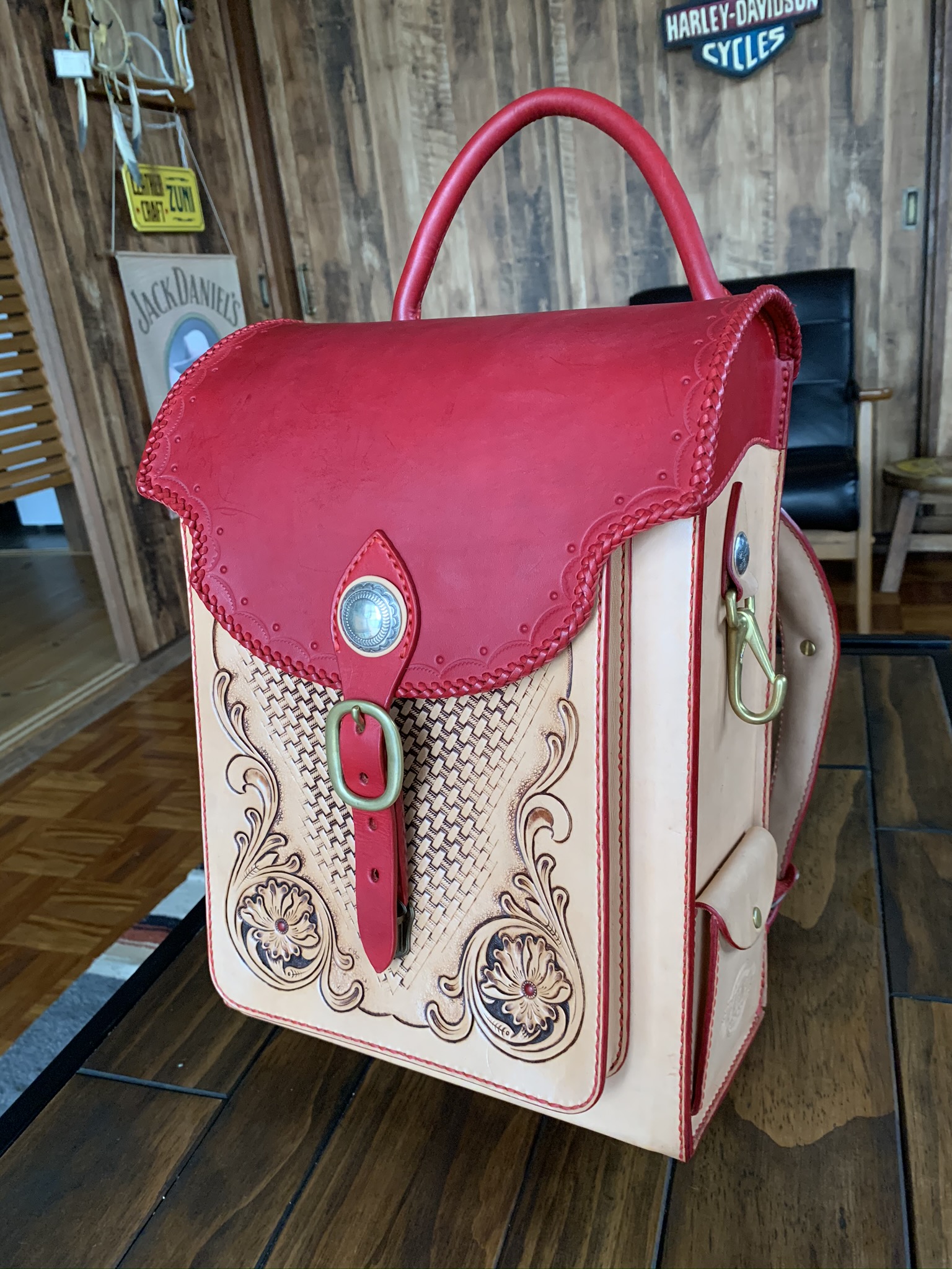 蓋が全面バージョンですと、どれだけカービングなり細工を試みてもランドセル感が残ってしまいますので、半蓋仕上げで制作する事にしました。