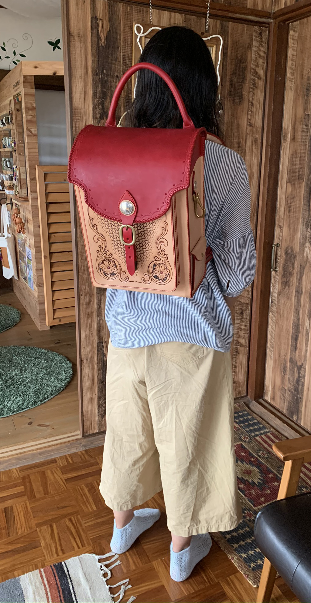 肩パーツは表面は赤染で裏側はナチュラル残しにしました。