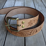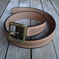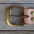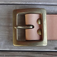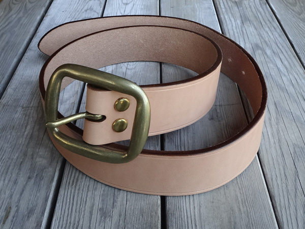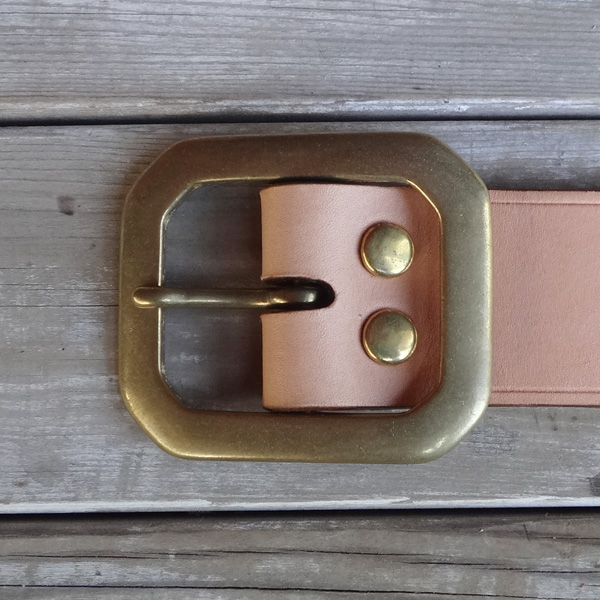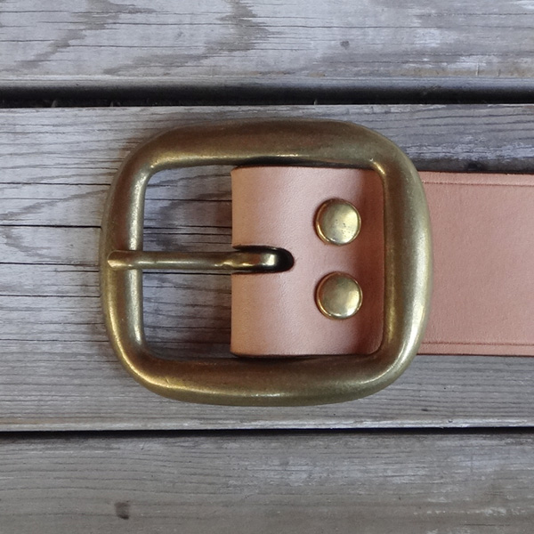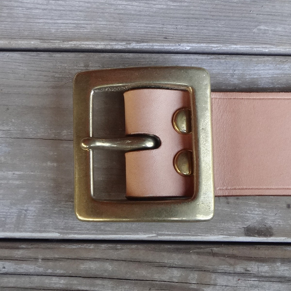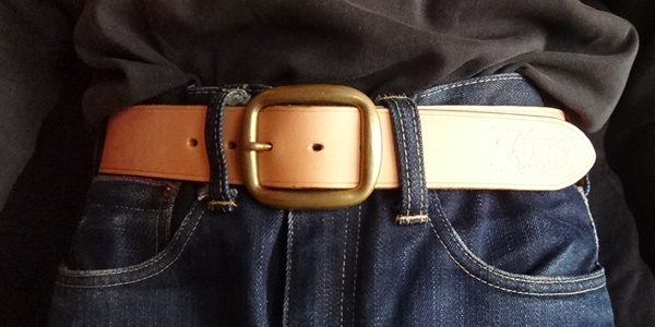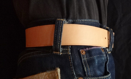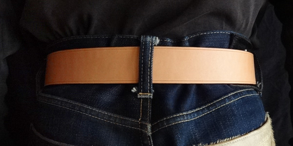 ■ベルト 40mm幅の4.2mm厚のハーマンオークレザーにて仕手てた重厚感溢れるレザーベルト。繊維の詰まったベンズのみを仕様してお り、タフに扱っても耐えれる耐久性を備えております。剣先に当工房オリジナルロゴを打刻し、1人1人のウエストに合わせたジ ャストサイズのベルトを制作しております。バックルの持ち込みや、幅を変えての制作といったご要望にも臨機応変に対応致しま す。尚、ベルトとバックルは別個にて販売しております。 SIZE:Wオーダーサイズ×H40×D4.2mm ウエストサイズは現在ご使用されているベルトのバックル・爪部分から、普段ご使用されるベルトの穴までの長さをお伝え下さい。 お伝え頂いたサイズを元に、バックル・爪部分から真ん中の穴に合わせたベルトを制作致します。(下記の写真参考)