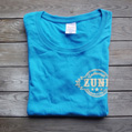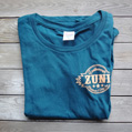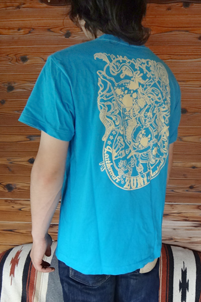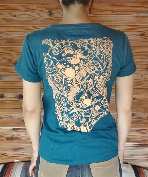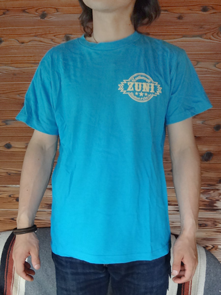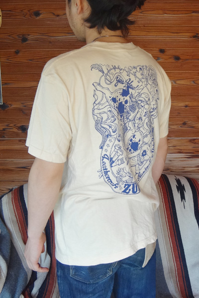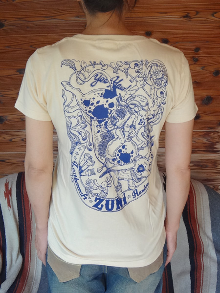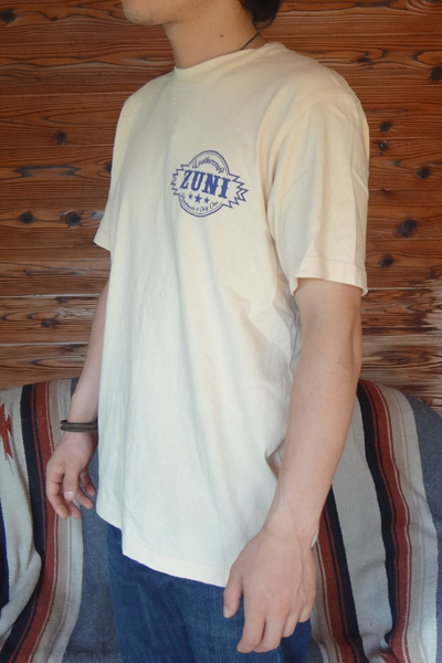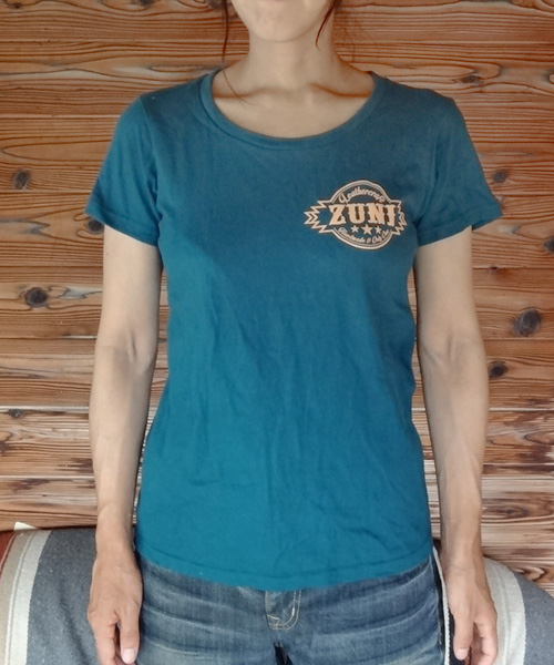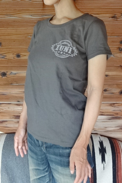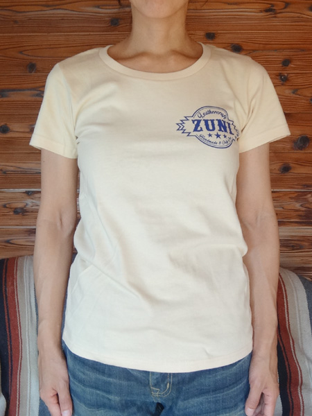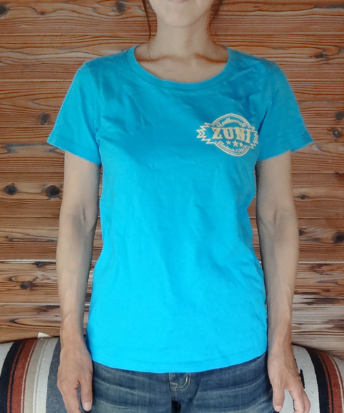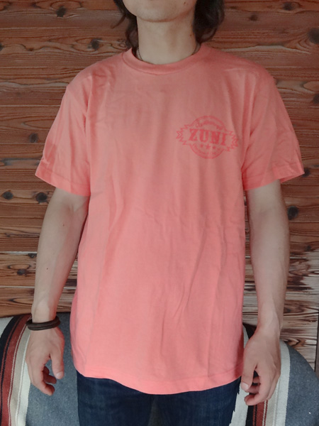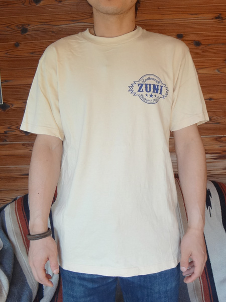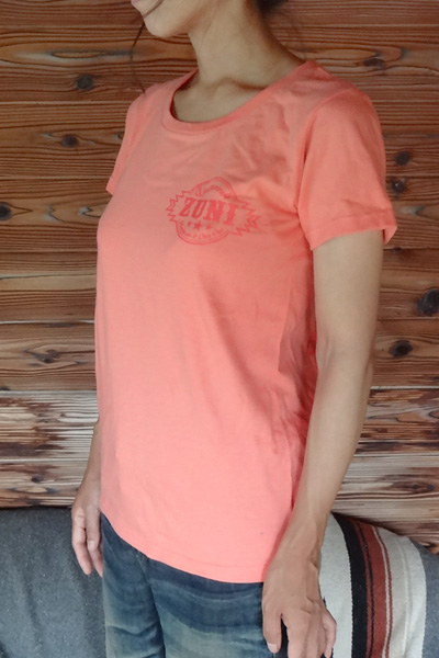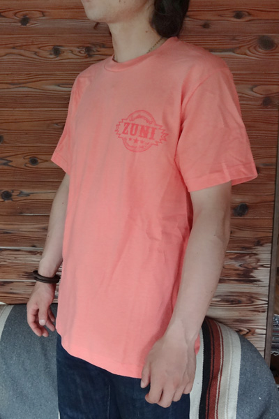 ■Tシャツ 5.6オンスの程よい厚みのプリントスター製オリジナルTシャツ。サイズはメンズのS・M・Lと、レディースのS・M・Lの6サイズ。 カラーはチャコール・エメラルド・ターコイズ・ライトオレンジの4カラー。左胸箇所にZUNIオルテガロゴ。背面は「ウエスタン& レザークラフト」をテーマに、迫力あるロデオシーンを革細工で用いるツール、唐草、ココペリなどで彩り、ZUNIならではのデザ インに仕上げました。