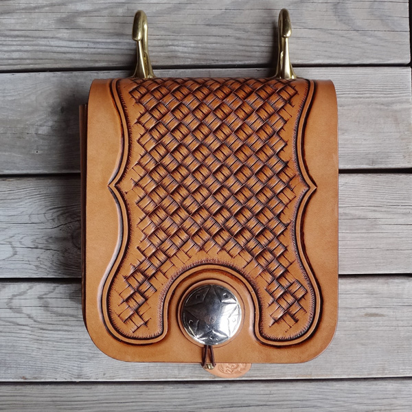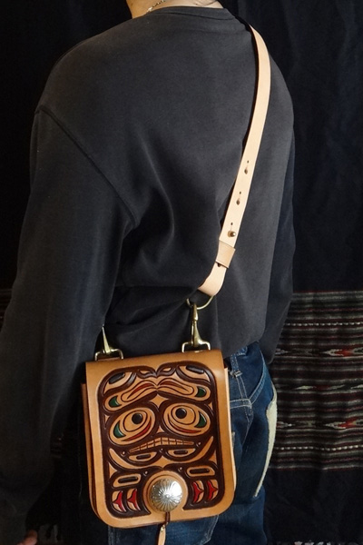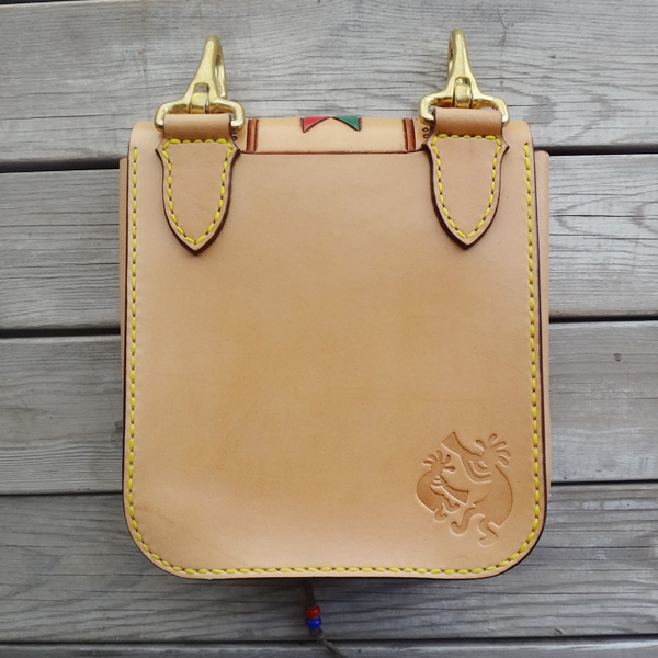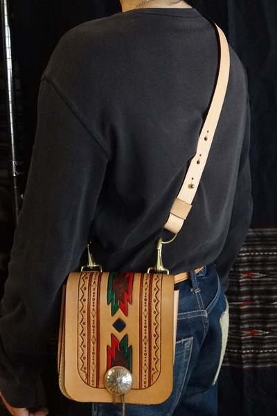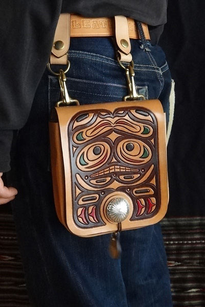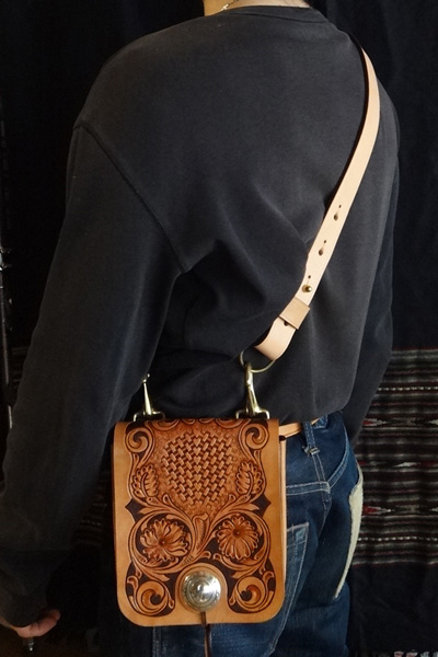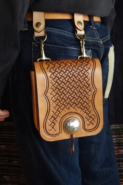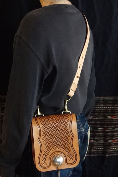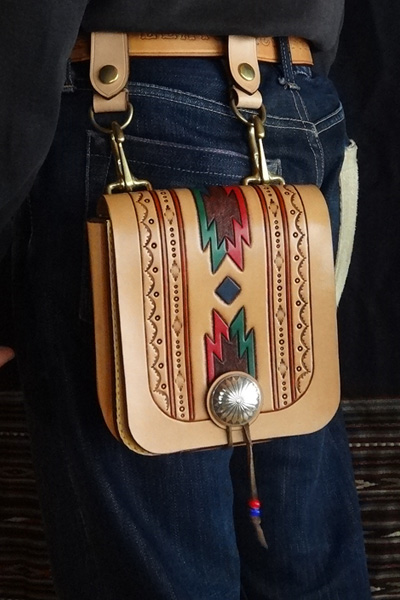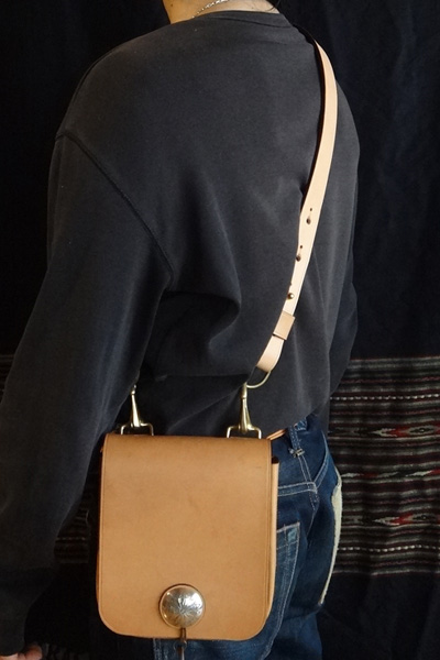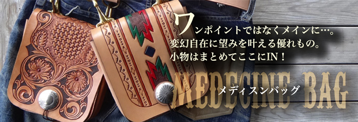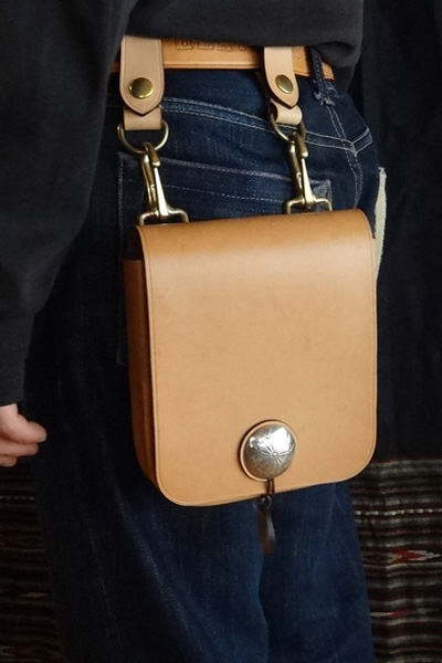■メディスンバッグ 腰に装着するメディスンバッグとしては勿論、ベルトフックをショルダーベルトに変更する事で、小振りなショルダーバッグとし ても愛用でき、多様性を備えたバッグ。マチは状況に合わせ広げる事も可能で、止め方はゴム止めか鹿紐結びの2パターンが選択 出来ます。メディスンorショルダーバッグのどちらかのみで使用する事も想定し、付属品は個別にて制作致します。 SIZE:W170×H230×D45mm CONCHOSIZE:35mm