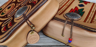 止め方は片手でも取り外しが出来る機能性重視のゴム止めか、 デザイン重視の鹿紐で括り付けるタイプをお選び出来ます。