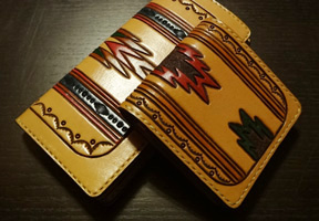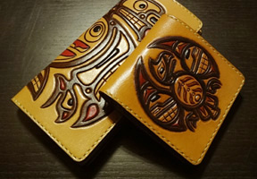 ハイダとはハイダ族の略語であり、ハイダ族はカナダのブリティッシュコロ ンビア州に居住する先住民族(ファーストネーション)です。 ワタリカラスやサンダーバードといった架空の生き物から、太陽や鮭、梟や 蛙など実在する生き物を独特なデザインで表現する部族です。 芸術と村落が残るスカン・グアイは世界文化遺産に認められています。 あまり馴染みのないハイダデザインですが、トーテムポールでピンとくる人 は多いと思います。また、以前カナダで開かれたバンクーバーオリンピック のメダルにも、ハイダデザインが起用されております。 そんな芸術性溢れるハイダ族のデザインをアレンジし、カービングで表現し たのは当工房が日本初と思われます。