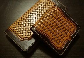 刻印を一打一打組み合わせて打つ事より幾何学的な模様へと変貌させるスタ イルです。 同じ刻印でも角度を変えて組み合わせる事により、全く違う表情を見せてく れます。 また、シェリダンスタイルとの組み合わせも相性が良いのでお勧めです。 これらのスタンプ刻印をバスケットという呼び名もありますが、あまり馴染 みがないと思われますので、スタンプスタイルと名付けさせて貰いました。 スタンプ模様は数10種類用意しておりますので、詳細は【SELECT】から お選び下さい。