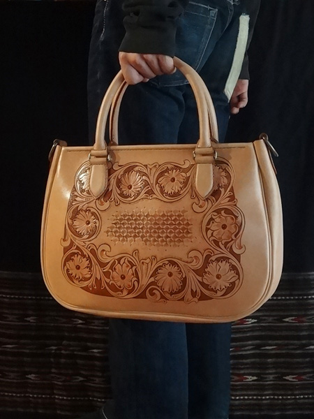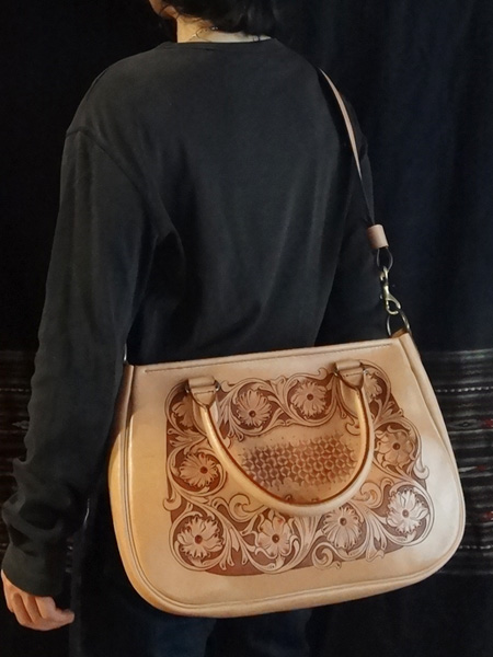 ■トートバッグ A4サイズの書類や雑誌も楽々収納出来る大きめのトートバッグ。サドルバッグをモチーフとしたデザインで、老若男女問わずご 愛用頂けます。鞄の中に別途スペースを設けており、小さなモノが鞄内で迷子にならない様、ファスナーで仕切れるスペースも確 保しております。トートバッグとしては勿論、鞄の両サイドの金具にショルダーベルトを取り付ける事により、ショルダーバッグ としても活躍してくれます。尚、トートバッグのみで使用する事を想定し、ショルダーベルトは付属品にて制作致します。 SIZE:W410×H280×D85mm(高さは取っ手を降ろした時のサイズ)