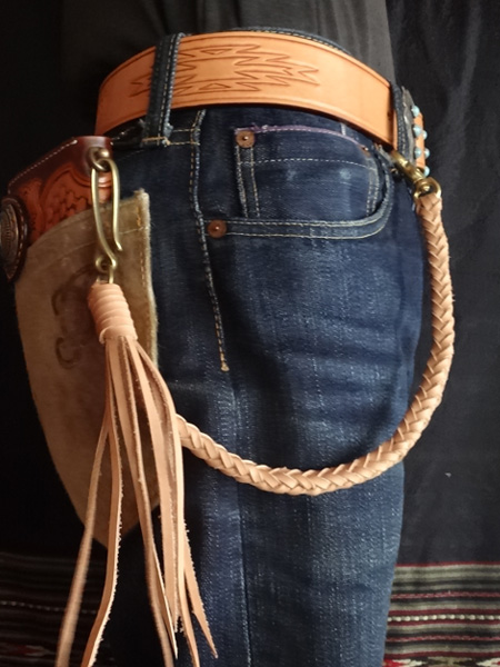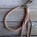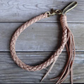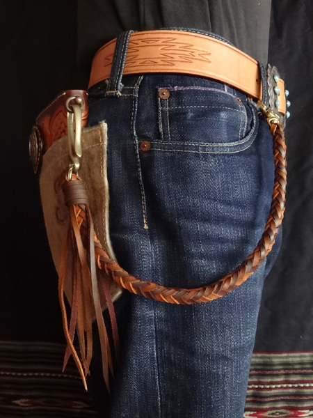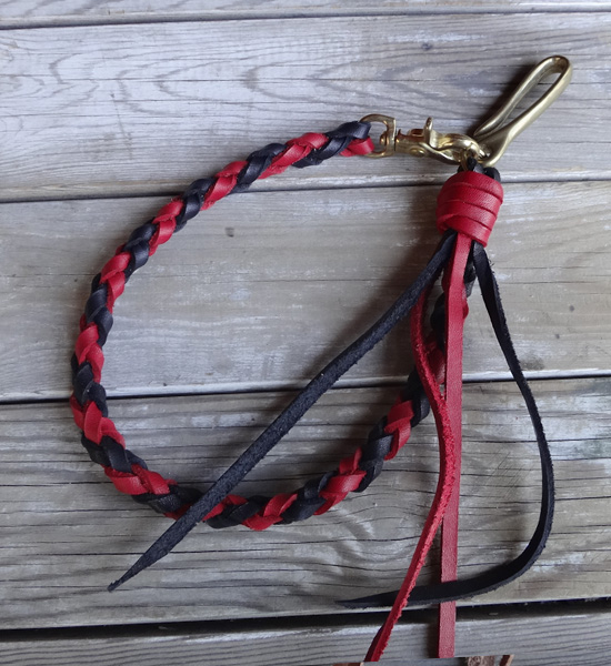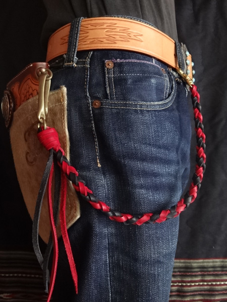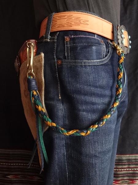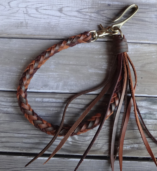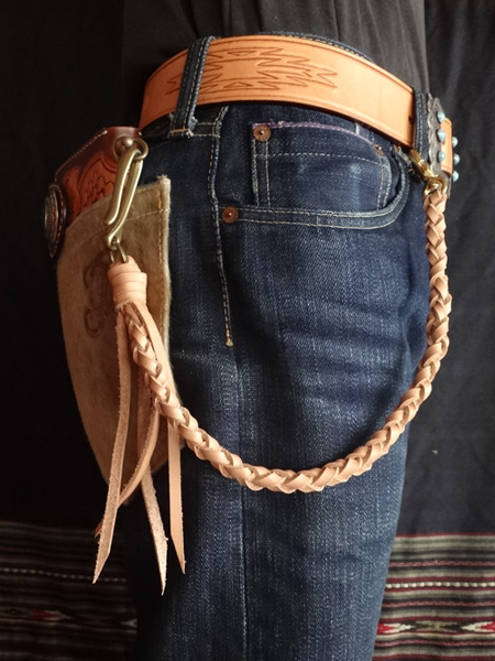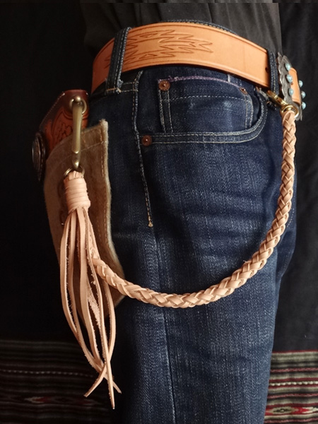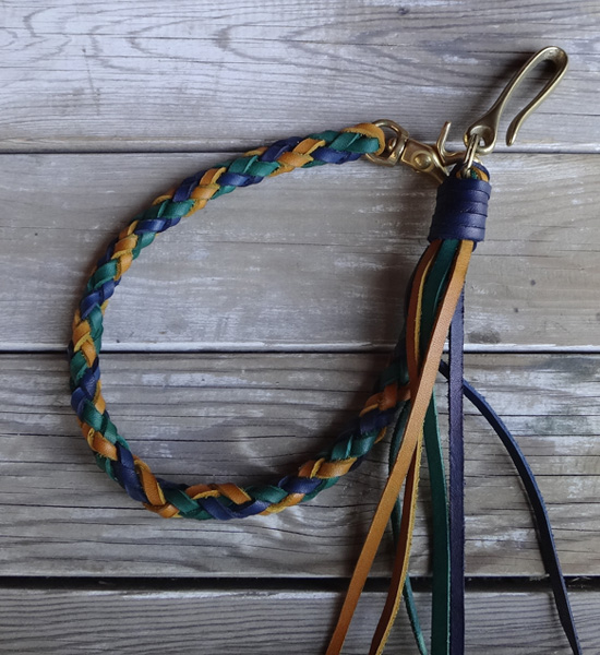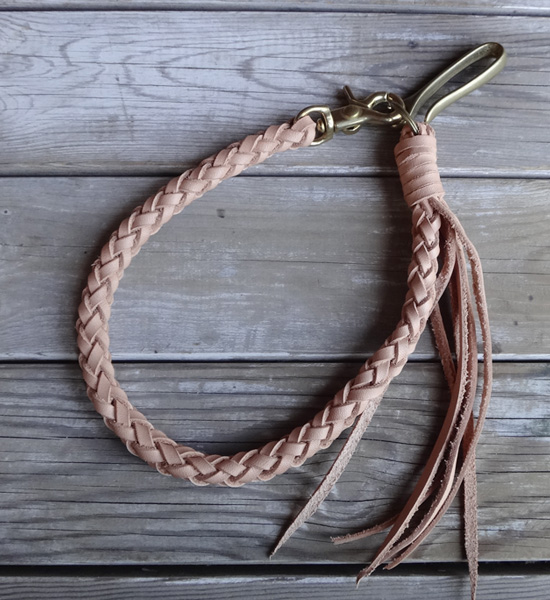 ■ウォレットロープ ウォレットに取り付ける事で紛失・盗難防止の役割を果たすと同時に、ウォレットの豪華さをより一層引き立てるアイテムとして 活躍。ハーマンオークレザーをロープとして使用し、編み方は4本、6本、8本編みの3パターンを展開しております。また、豊 富な染色レパートリーより、貴方だけのオリジナルカラーとなるウォレットロープも制作致します。 SIZE:W470×D10mm
